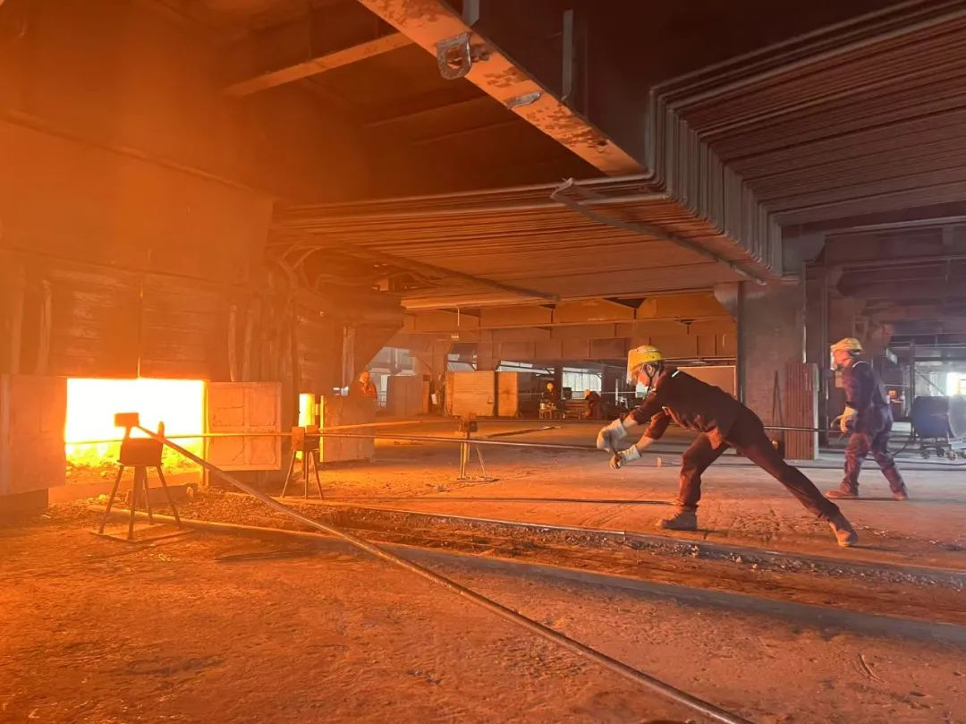 汗水為證,熱浪中的堅(jiān)守力量。爐火在爐膛里翻涌不息,工人們的身影便在爐臺(tái)前從未停歇。被五十?dāng)z氏度高溫反復(fù)炙烤的工裝,濕了又干、干了又濕,后背早已印出深淺不一的鹽漬地圖;安全帽下的臉頰被熱輻射熏得發(fā)紅,卻始終緊盯著爐口的火焰變化。這些被汗水泡脹又被熱氣烘干的手掌,既握得住滾燙的推料器,也托得起生產(chǎn)線的平穩(wěn)運(yùn)轉(zhuǎn)。這份沉默的堅(jiān)守里,藏著冶煉工人對(duì)崗位的敬畏,對(duì)產(chǎn)品的負(fù)責(zé),正是這日復(fù)一日的敬畏與較真,讓“堅(jiān)守”二字在高溫爐臺(tái)前有了沉甸甸的分量。