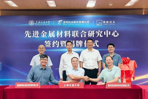 8月30日,陜西省鈦鎳材料創(chuàng)新中心(以下簡稱“鈦鎳創(chuàng)新中心”)首個校企聯(lián)合研究中心簽約暨揭牌儀式在上海交通大學(xué)舉行。寶鈦集團(tuán)黨委書記、董事長王儉,寶鈦股份總經(jīng)理張海龍,上海交通大學(xué)科學(xué)技術(shù)發(fā)展研究院副院長、先進(jìn)產(chǎn)業(yè)技術(shù)研究院院長盛鑫軍,材料科學(xué)與工程學(xué)院副院長董杰等出席儀式。