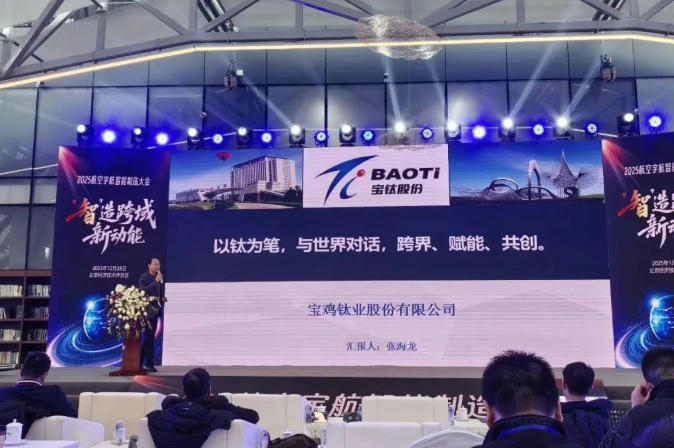 12月28日,2025航空宇航智能制造大會在北京召開。會議聚焦航空航天智能制造技術轉化,匯聚院士、專家學者及低空經(jīng)濟、新能源汽車等領域領軍企業(yè)代表,共同探討新時代下中國航空宇航制造產(chǎn)業(yè)的發(fā)展新路徑。寶雞鈦業(yè)股份有限公司(以下簡稱“寶鈦股份”)總經(jīng)理張海龍應邀參會并作主題報告。