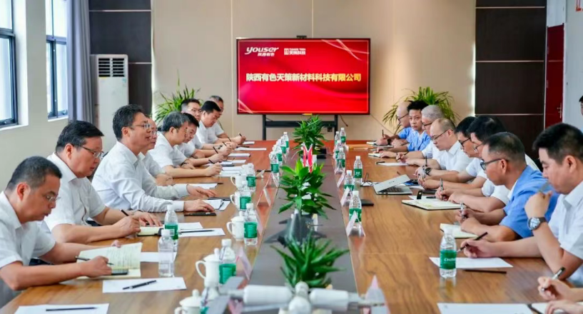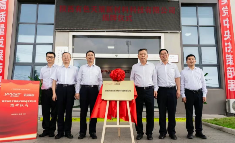 7月10日,陜西有色天策新材料科技有限公司揭牌儀式在銅川市耀州區(qū)董家河工業(yè)園舉行。陜西有色金屬集團(tuán)黨委書記、董事長吳群英,耀州區(qū)委書記張嶠,區(qū)委副書記、區(qū)長高崗共同揭牌。集團(tuán)公司黨委委員、副總經(jīng)理黃忠良主持揭牌儀式。