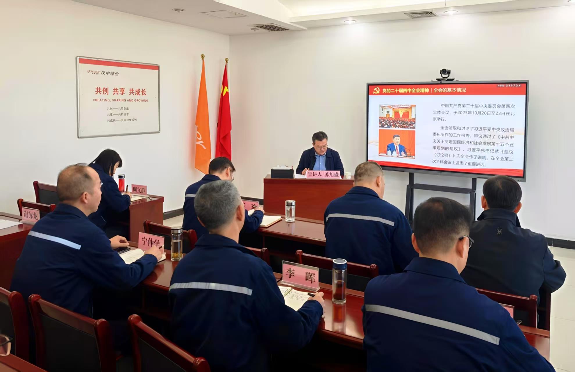 蘇旭盛強調(diào),學(xué)習(xí)宣傳貫徹全會精神,是當(dāng)前和今后一個時期的重大政治任務(wù),要準(zhǔn)確把握全會精神的核心要義,深刻認(rèn)識“十五五”時期經(jīng)濟社會發(fā)展的重大意義,全面對標(biāo)黨中央部署要求,扎實推進全會精神的學(xué)習(xí)貫徹、“十五五”規(guī)劃編制和當(dāng)前各項重點工作。蘇旭盛要求,一要把學(xué)習(xí)黨的二十屆四中全會精神轉(zhuǎn)化為推動各項工作的強大動力,切實推動漢中鋅業(yè)高質(zhì)量發(fā)展;二要抓實年末歲尾安全生產(chǎn),確保全面完成年度目標(biāo)任務(wù);三要科學(xué)謀劃“十五五”規(guī)劃與2026年工作,扎實推進重點工作落地見效。