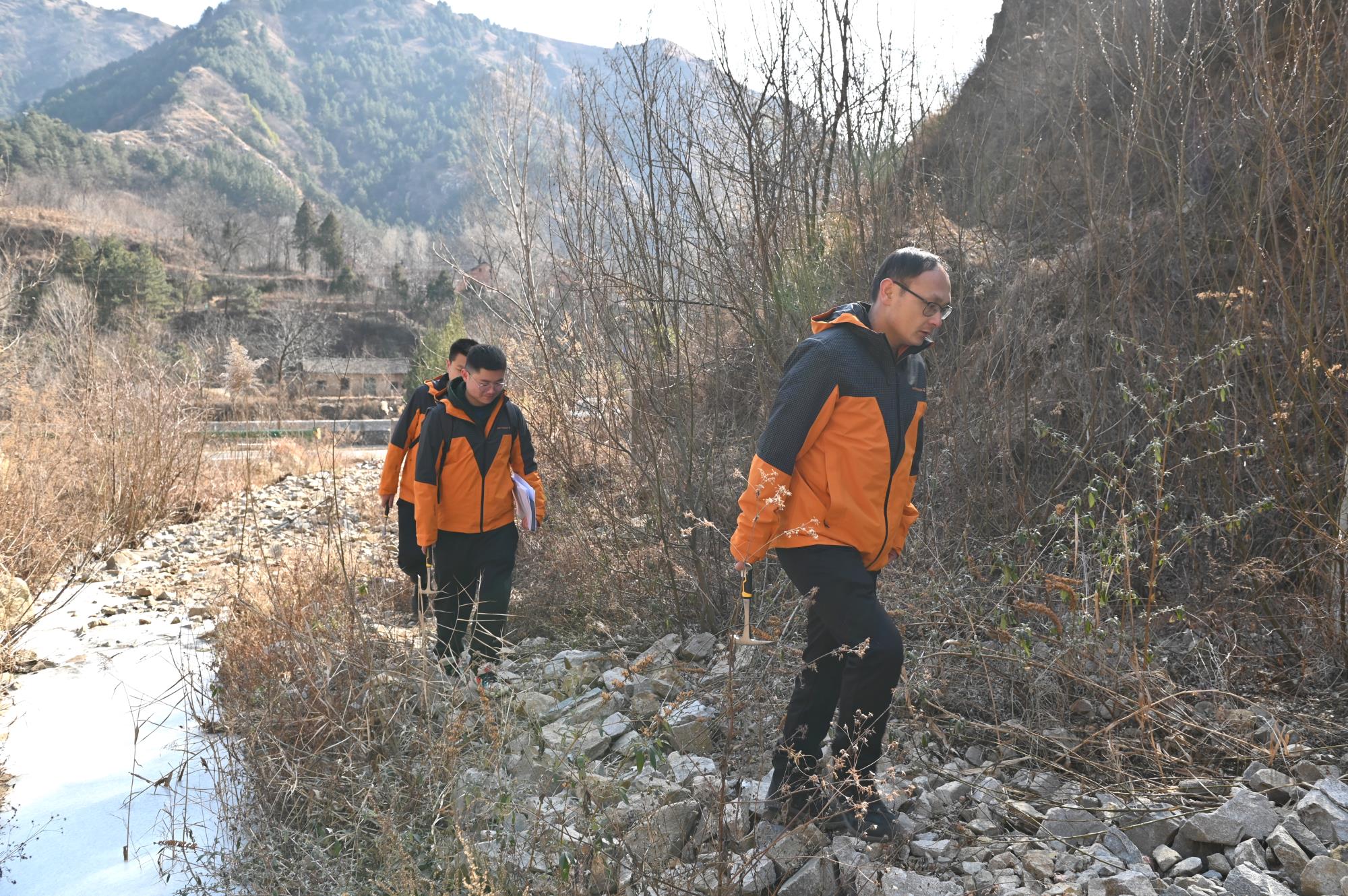 ▲陜西省商州區(qū)北寬坪銅銀礦普查項目地質(zhì)人員進行地質(zhì)路線調(diào)查