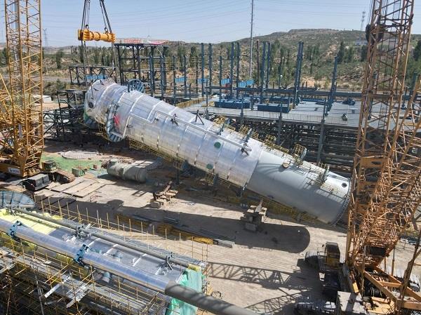 隨著下達起吊指令,在兩臺大型吊車的精密協(xié)作下,225噸重的精餾塔下段穩(wěn)穩(wěn)升起,順利安裝就位。這一成功,標志著天瑞硅材料電子級多晶硅產(chǎn)業(yè)升級項目正式從土建施工階段邁向機電安裝施工階段,為天瑞硅材料打造高端電子級硅材料品牌、實現(xiàn)高質(zhì)量發(fā)展奠定了堅實基礎(chǔ)。