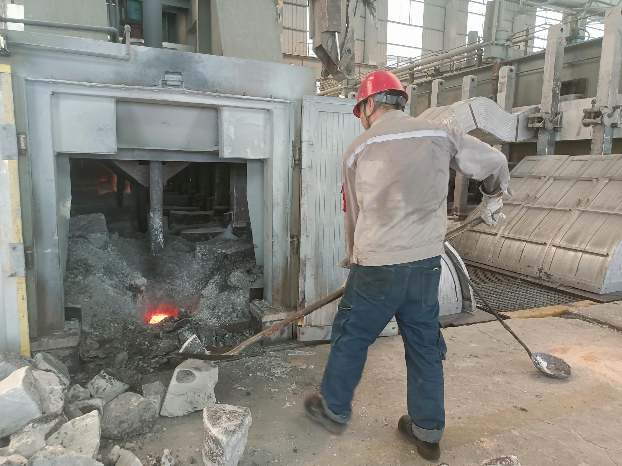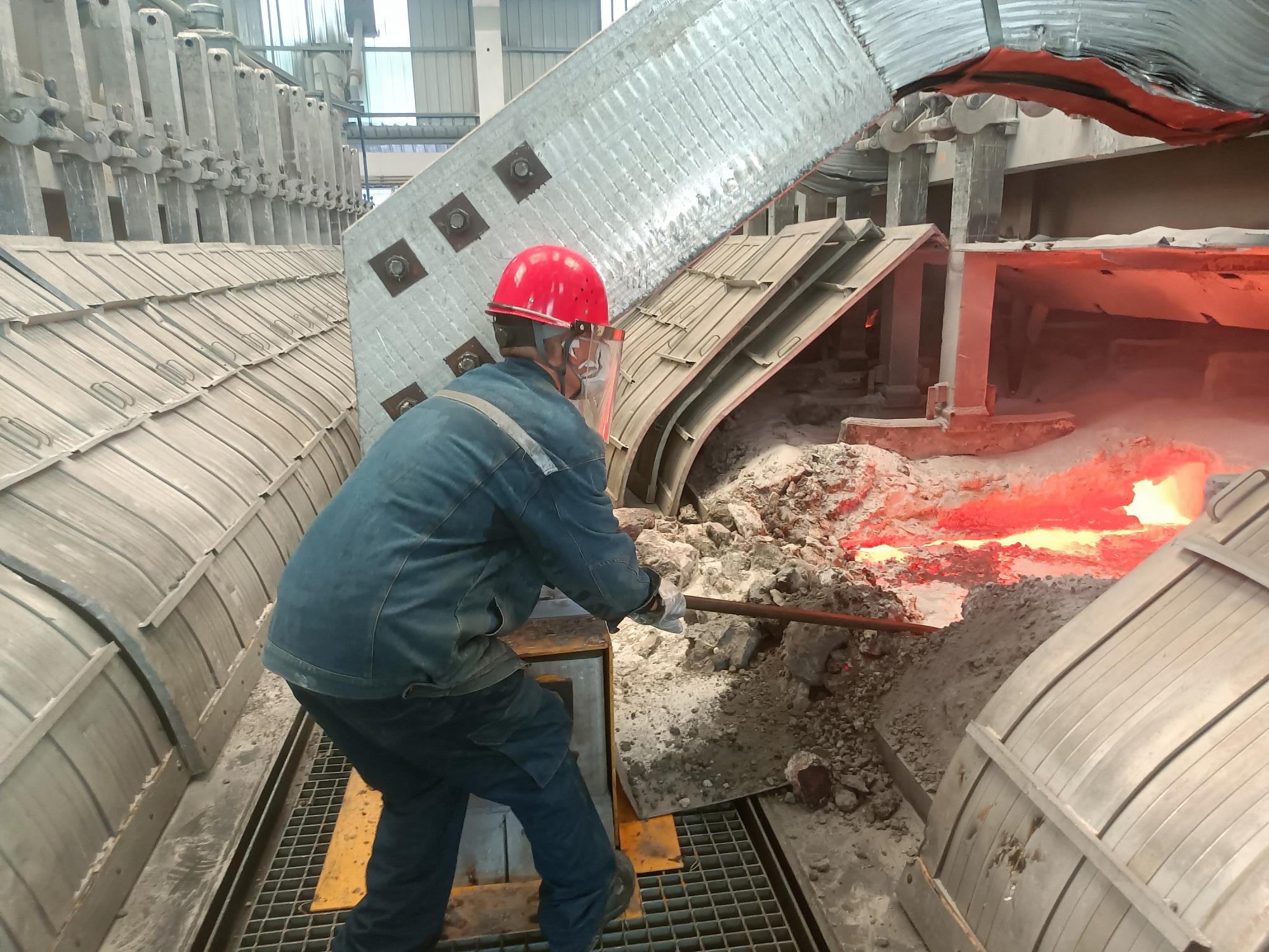 “溫度每上升一度,對電解槽的穩(wěn)定性都是考驗,我們必須像照顧孩子一樣精心照料每一臺電解槽。”工區(qū)長緊盯著顯示屏里的數(shù)據(jù)變化,手指在鍵盤上快速敲擊,精細調(diào)整參數(shù)。與此同時,車間內(nèi)工人們手執(zhí)鐵鍬,細致地刮掃散熱帶,每一個動作都精準而利落。灼熱空氣里,人與機器緊密配合共同編織著精密的生產(chǎn)之網(wǎng)。