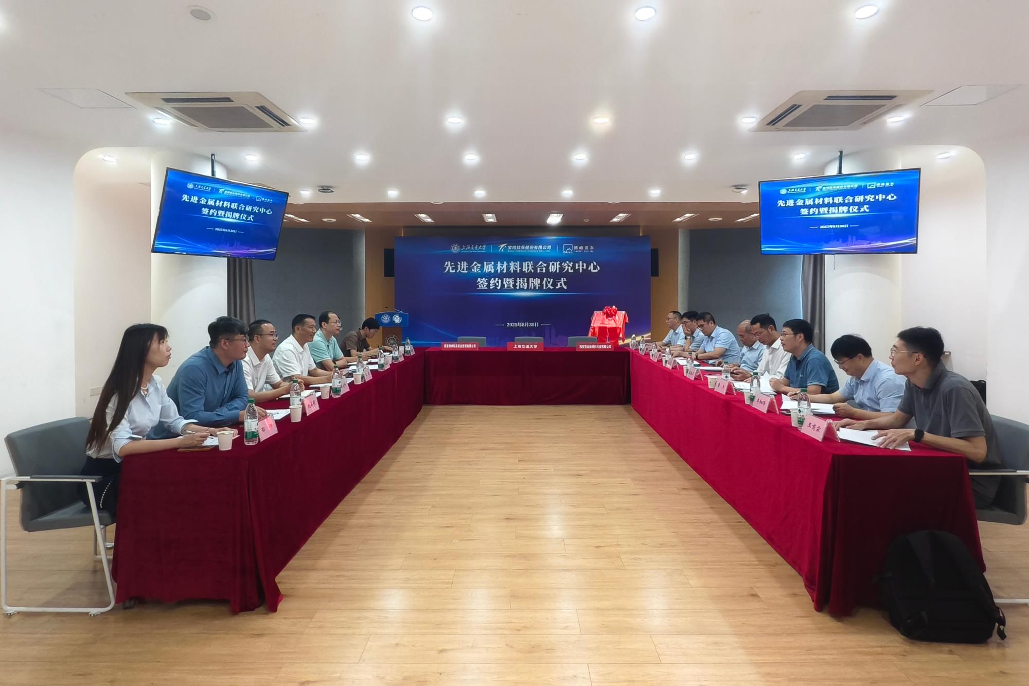 簽約儀式前,王儉、張海龍一行同中國工程院院士、輕合金精密成型國家工程中心主任丁文江教授會談,并參觀了材料科學(xué)與工程學(xué)院展廳。