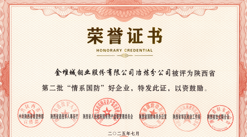 近日,陜西省第二批“情系國(guó)防”先進(jìn)典型發(fā)布儀式在西安舉行,現(xiàn)場(chǎng)向全省8位“情系國(guó)防”好民兵、8位“情系國(guó)防”好(鄉(xiāng)鎮(zhèn)、街道)書(shū)記、8個(gè)“情系國(guó)防”好家庭、6家“情系國(guó)防”好企業(yè)頒獎(jiǎng)。金鉬股份冶煉分公司被評(píng)為陜西省第二批“情系國(guó)防”好企業(yè)。