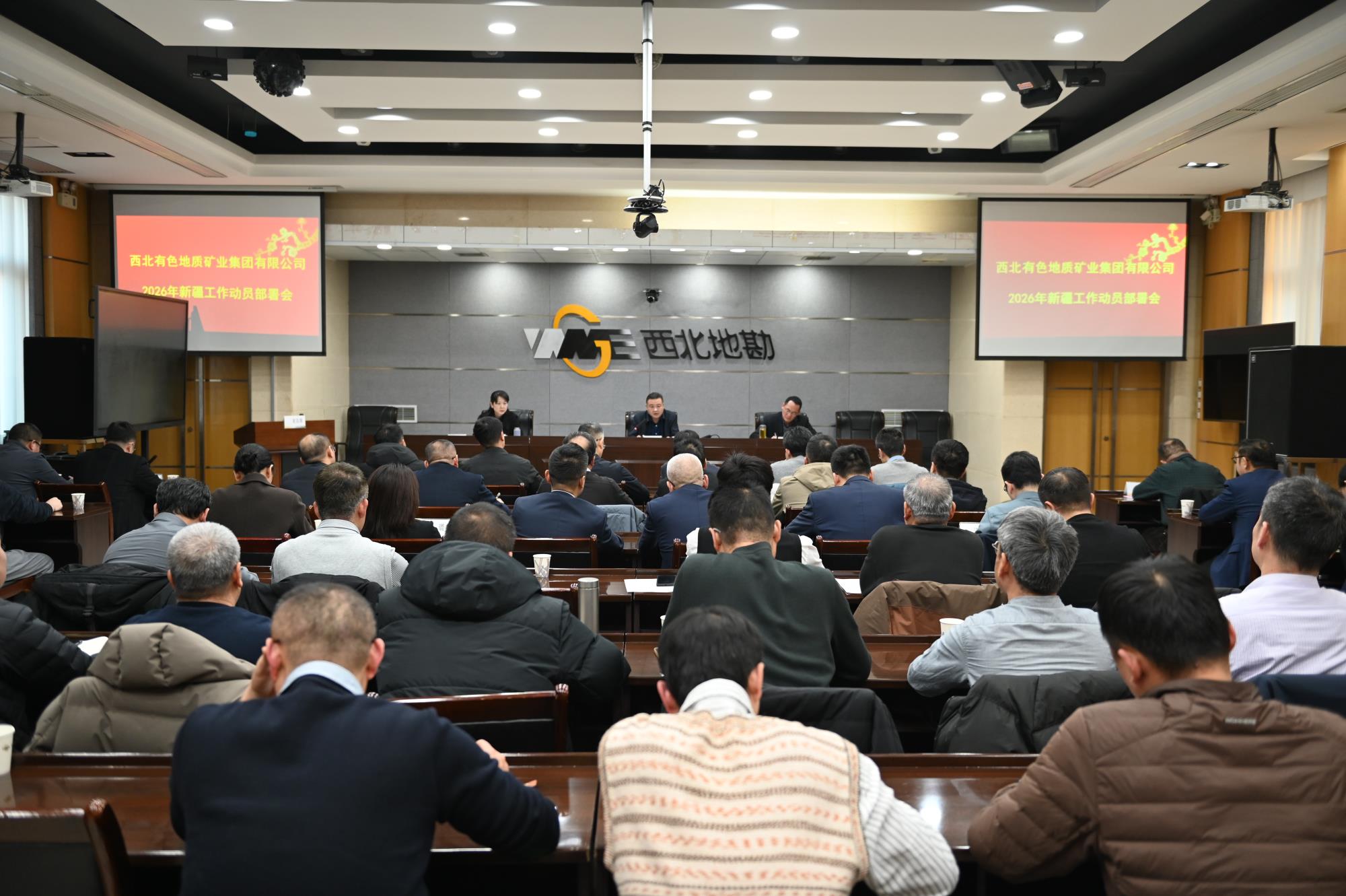 1月12日,地礦集團召開2026年新疆工作動員部署會,深入落實陜西有色金屬集團主要領導在疆考察調研期間的決策部署,進一步統一思想、凝聚共識,精準錨定資源倍增目標,系統謀劃在疆工作布局,為2026年各項工作蓄勢賦能、開篇啟航。