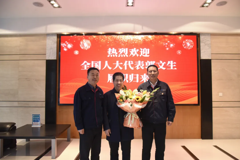 3月13日下午,寶鈦集團(tuán)舉行迎接儀式熱烈歡迎出席十四屆全國(guó)人大四次會(huì)議的全國(guó)人大代表、寬厚板公司職工郭文生履職歸來(lái)。寶鈦集團(tuán)黨委書(shū)記、董事長(zhǎng)王儉,寶鈦集團(tuán)黨委副書(shū)記、工會(huì)主席賀治民出席儀式并與郭文生座談交流。