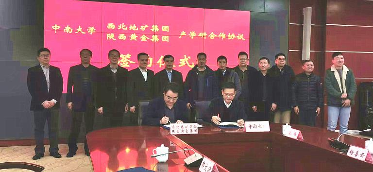 近日,地礦集團(tuán)、黃金集團(tuán)與中南大學(xué)在長(zhǎng)沙舉行簽約儀式,雙方正式簽署產(chǎn)學(xué)研合作協(xié)議。地礦集團(tuán)、黃金集團(tuán)黨委書記、董事長(zhǎng)秦西社,中南大學(xué)副校長(zhǎng)周科朝致辭并代表雙方簽字。地礦集團(tuán)、黃金集團(tuán)副總經(jīng)理李宏平,黃金集團(tuán)副總經(jīng)理任革凡分別介紹地礦集團(tuán)、黃金集團(tuán)基本情況。