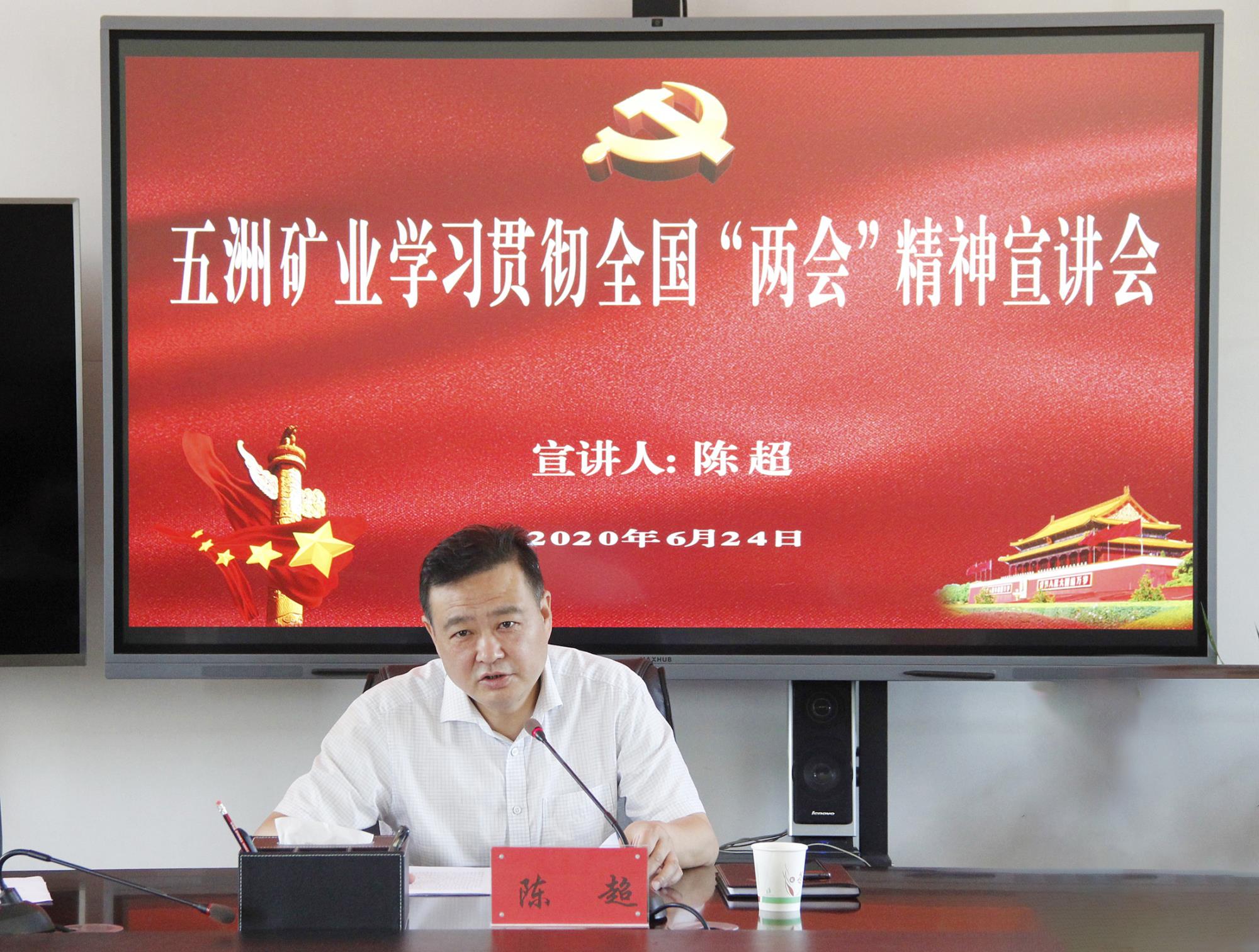 為深入學習貫徹2020年全國兩會精神,根據(jù)集團公司黨委安排,6月24日上午,五洲礦業(yè)召開學習貫徹全國兩會精神宣講會。五洲礦業(yè)黨委副書記、總經(jīng)理陳超作專題宣講輔導。五洲礦業(yè)領(lǐng)導班子成員、總經(jīng)理助理、機關(guān)各部室負責人、各基層單位黨政正職聆聽了宣講輔導。