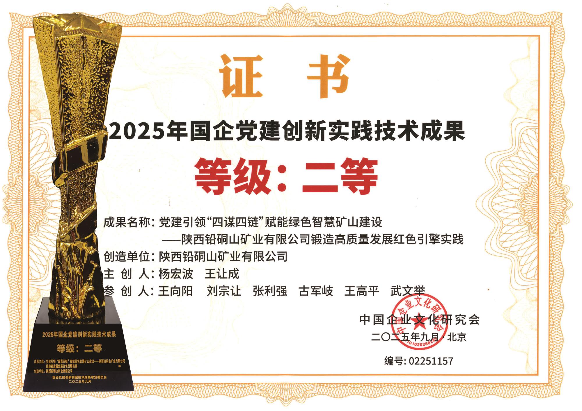 近日,2025 年國企黨建創(chuàng)新實踐交流會在北京召開。會上公布了“2025年國企黨建創(chuàng)新實踐技術(shù)成果”評選結(jié)果,地礦集團權(quán)屬工程公司和西北資源鉛硐山礦業(yè)公司申報的黨建創(chuàng)新成果,從全國眾多案例中脫穎而出,雙雙榮獲第二等級。