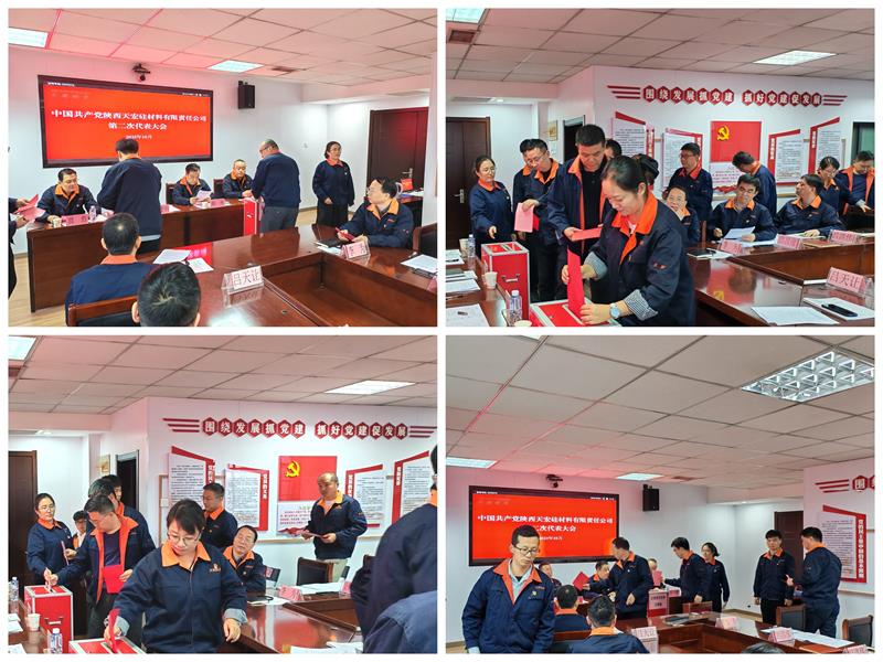 近日,中國共產(chǎn)黨陜西天宏硅材料有限責任公司第二次代表大會在公司多媒體會議室召開。大會的主題是:以習近平新時代中國特色社會主義思想為指導,深入貫徹黨的二十大精神,全面落實新時代黨的建設(shè)總要求和新時代黨的組織路線;在上級黨委的正確領(lǐng)導下,回顧公司過去五年工作,剖析存在不足,研判當前形勢,明確未來五年工作思路與舉措,選舉產(chǎn)生公司新一屆黨的委員會和紀律檢查委員會。