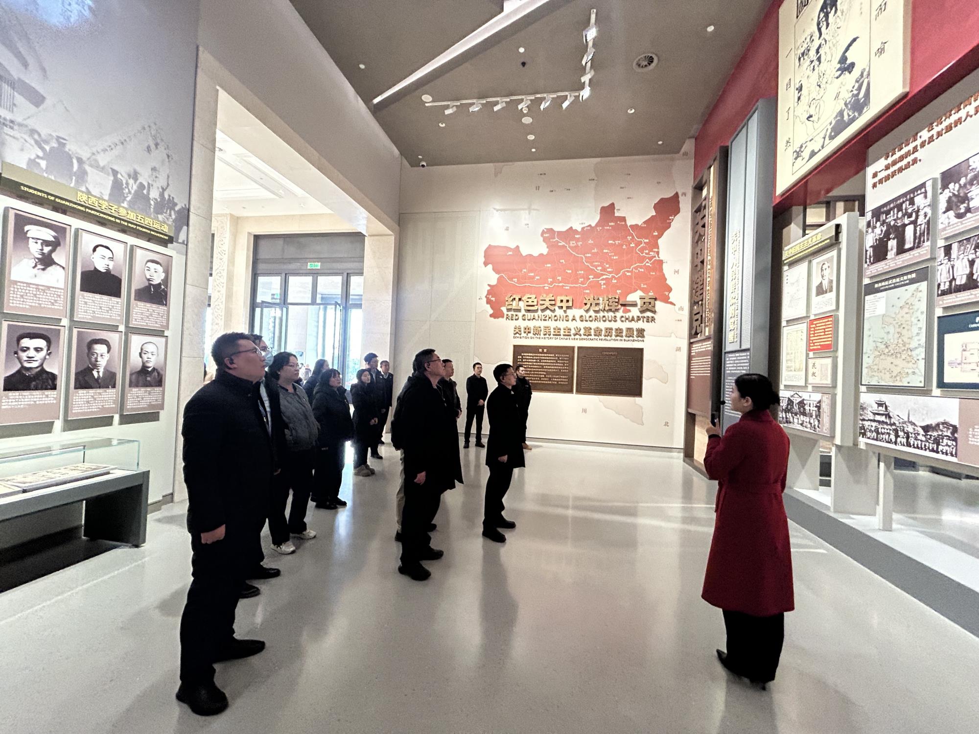 走進關(guān)中革命紀(jì)念館,“星火燎原”“中流砥柱”“薪火相傳”三大篇章系統(tǒng)展示了渭華起義、扶眉戰(zhàn)役等重要歷史場景,并生動呈現(xiàn)了新時代陜西高質(zhì)量發(fā)展的豐碩成果。通過翔實的史料與生動的展陳,全體黨員深入了解了關(guān)中地區(qū)人民在黨的領(lǐng)導(dǎo)下波瀾壯闊的革命歷程,深切感受到習(xí)仲勛同志作為陜甘邊革命根據(jù)地主要創(chuàng)建者之一的光輝事跡,感悟到老一輩無產(chǎn)階級革命家的堅定信念與使命擔(dān)當(dāng)。參觀結(jié)束后,全體黨員面向黨旗,重溫入黨誓詞,重憶初心使命,進一步堅定理想信念。