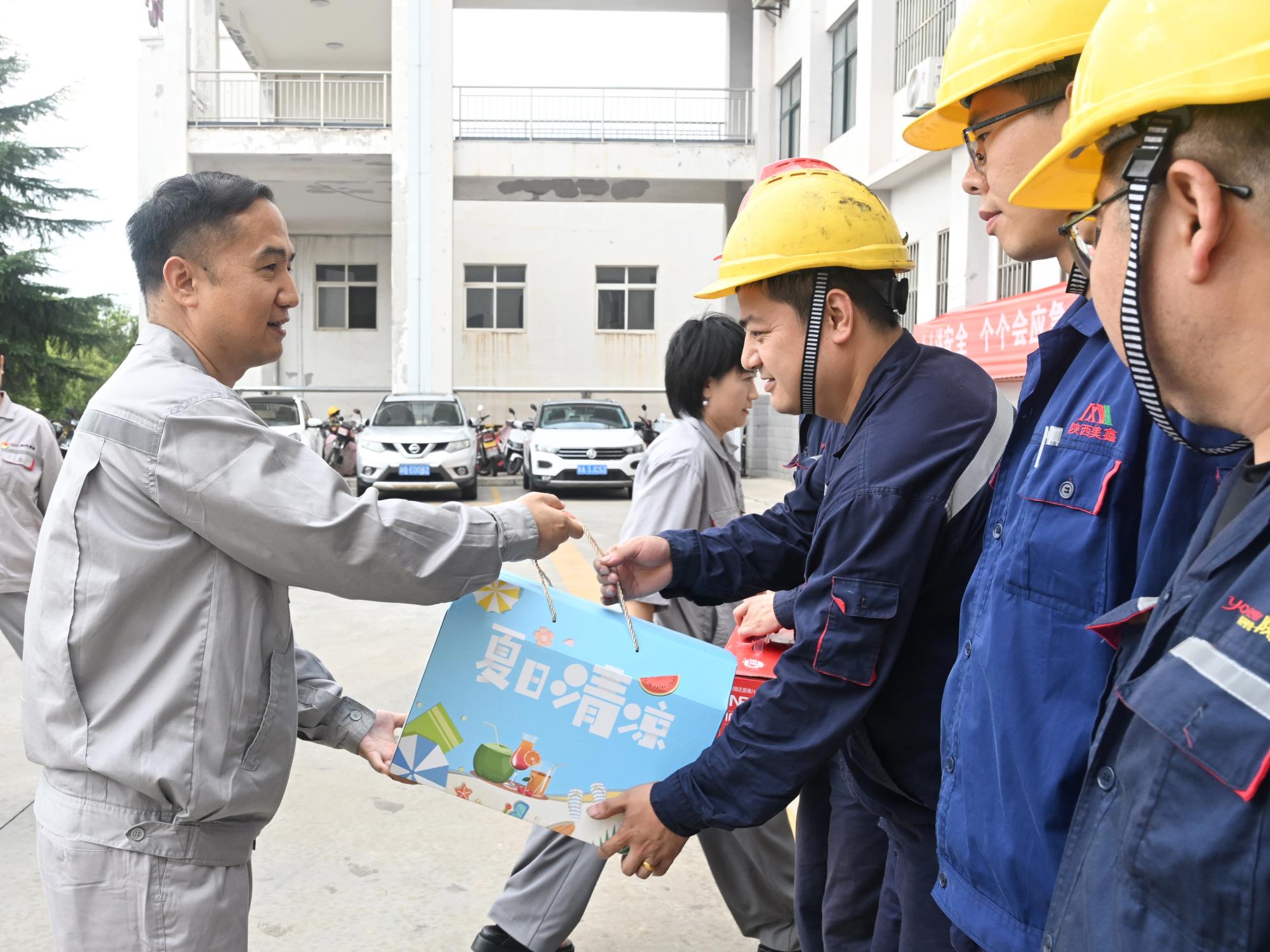 “天氣炎熱,一定要注意勞逸結合,要多喝水,感覺身體不適要立即報告休息……”楊亞科將集團公司工會準備的慰問品交到在場職工手中,仔細詢問大家的工作強度、作息安排以及防暑降溫方法,反復叮囑大家要增強自我保護意識、確保高溫作業(yè)安全。同時現場要求各基層單位務必將職工的身體健康放在首位,嚴格落實陜西美鑫公司各項防暑降溫措施和安全生產規(guī)定,切實做好后勤服務保障工作,科學調整作息時間,全力為一線職工創(chuàng)造安全、舒適的工作環(huán)境,推動職工健康與安全生產實現“雙提升”。