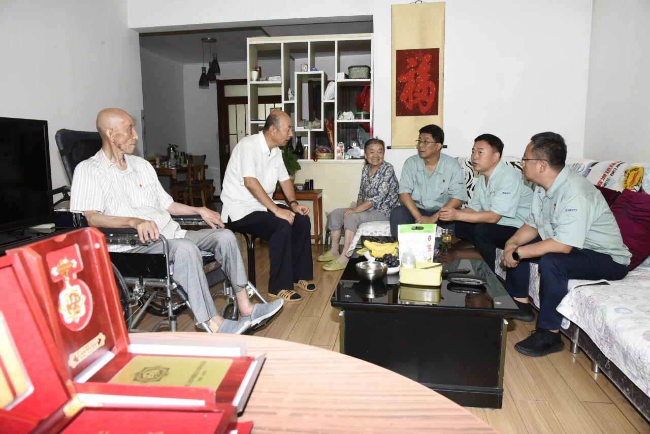 慰問中,賀治民代表集團向劉兆華致以崇高敬意,并祝他身體康健、幸福安康。劉兆華家人深情回憶了老人抗戰(zhàn)的烽火歲月和退伍后扎根寶鈦默默奉獻的工作經歷,并表示感謝企業(yè)的長期關懷,既讓老人感受到了組織的溫暖,也讓后輩更加堅定了傳承紅色基因、感恩回饋企業(yè)社會的信念。