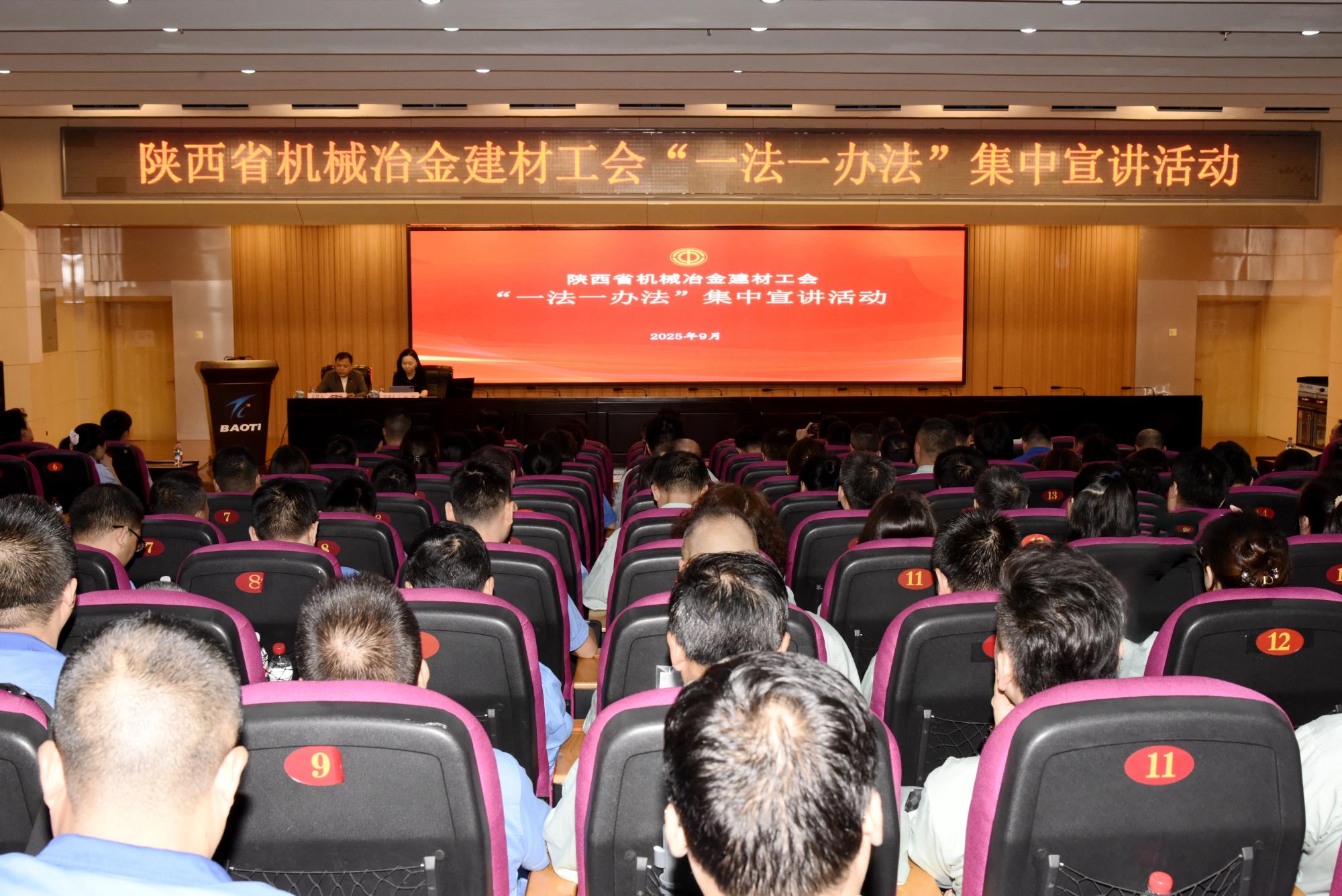 9月9日上午,省機械冶金建材工會在寶鈦集團舉辦寶雞片區(qū)企業(yè)“一法一辦法”集中宣講活動,深入落實省總工會工作部署,進一步提升工會干部運用法治思維開展工作的能力,切實增強職工依法維權、參與工會活動的法治觀念。