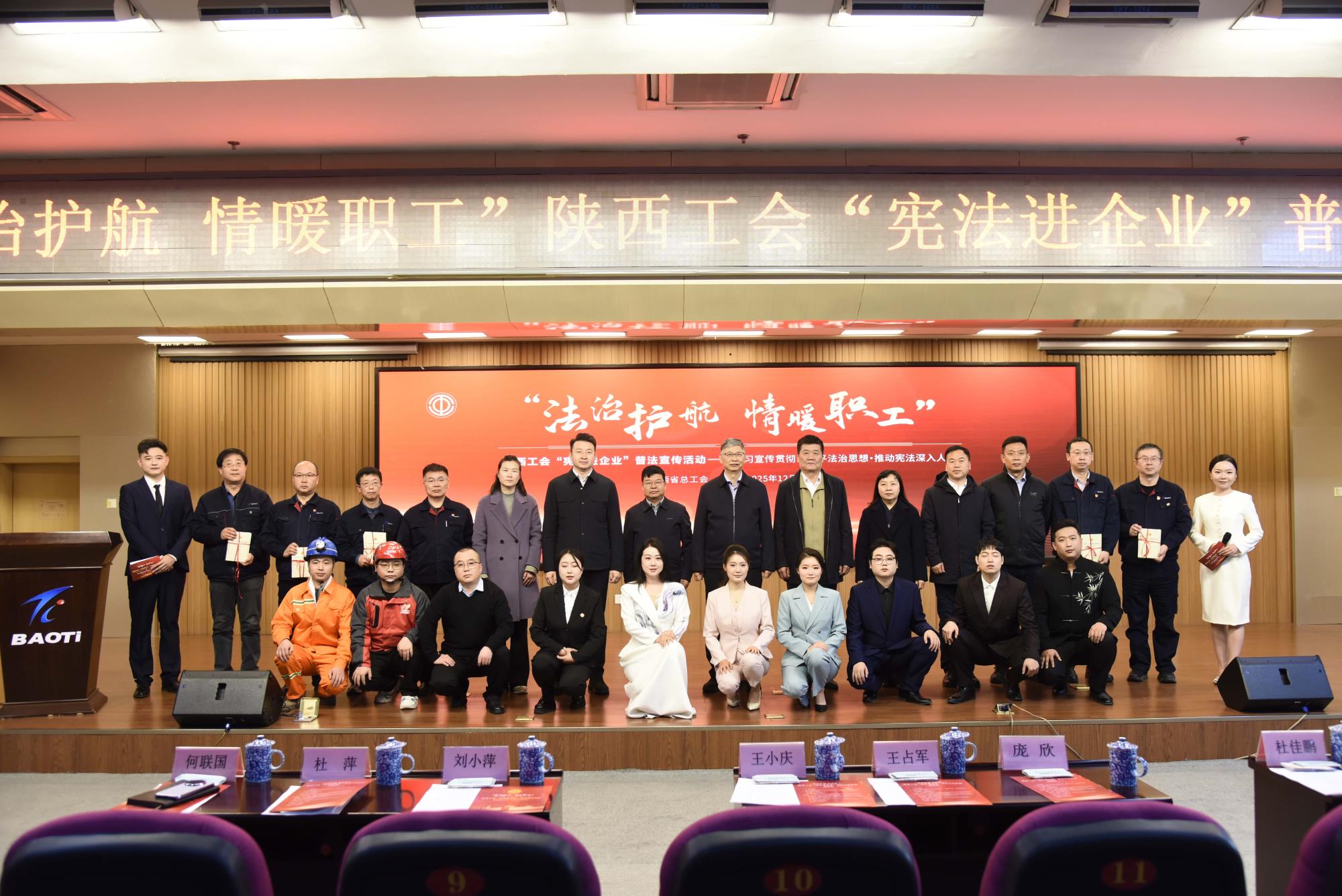 12月4日,第十二個(gè)國家憲法日當(dāng)天,由陜西省總工會主辦,省機(jī)械冶金建材工會、寶雞市總工會協(xié)辦的“法治護(hù)航·情暖職工”陜西工會“憲法進(jìn)企業(yè)”普法宣傳活動在寶鈦集團(tuán)寶鈦賓館七樓學(xué)術(shù)報(bào)告廳舉行。