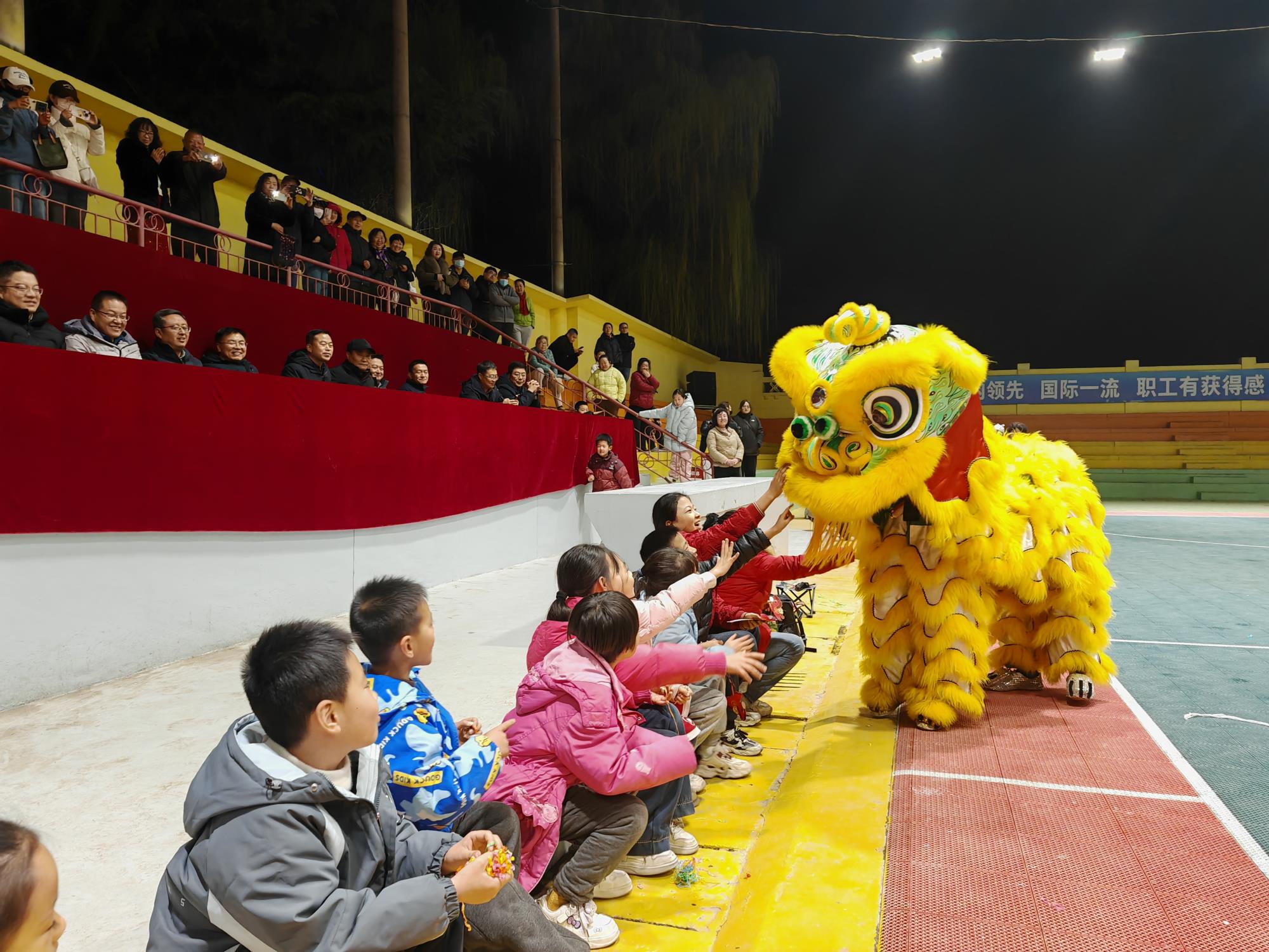 晚上7點,寶鈦老區(qū)燈光球場華燈璀璨、人潮涌動,元宵游園活動在喜慶歡快的舞蹈《開門紅》中正式拉開帷幕。氣勢磅礴的《彩龍舞東方》驚艷登場,飛天龍燈在夜空中盤旋升騰,瞬間點燃全場熱情;剛?cè)岵摹短珮O表演》行云流水,盡顯寶鈦人干事創(chuàng)業(yè)張弛有度、步履鏗鏘的精神風貌;舞蹈《盛世歡歌》《舞動鈦城》節(jié)奏明快、活力四射,生動展現(xiàn)鈦城兒女昂揚向上、奮發(fā)有為的時代風采;緊接著登場的舞龍表演騰躍穿梭、氣勢如虹,將現(xiàn)場氛圍一次次推向高潮;古韻十足的《大唐百戲》妙趣橫生,帶領觀眾沉浸式穿越市井繁華;兩只醒獅騰挪跳躍、威武靈動,與現(xiàn)場觀眾熱情互動、納祥送福,最終獅口吐幅——“恭喜發(fā)財 萬事騰意”的美好祝福引發(fā)全場陣陣歡呼。