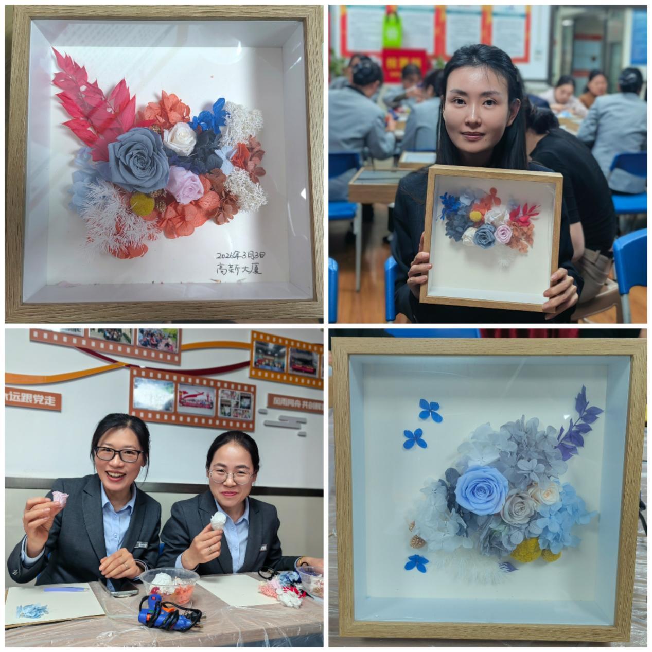 活動(dòng)現(xiàn)場(chǎng),工會(huì)向全體女職工致以節(jié)日問候,感謝大家在各自崗位上的辛勤付出與堅(jiān)守。在花藝?yán)蠋熤笇?dǎo)下,大家精心選材、巧妙搭配,親手制作出一件件精致獨(dú)特的永生花作品。現(xiàn)場(chǎng)氛圍溫馨熱烈,女職工們?cè)趧?chuàng)作中舒緩壓力、增進(jìn)情誼,收獲滿滿幸福感。