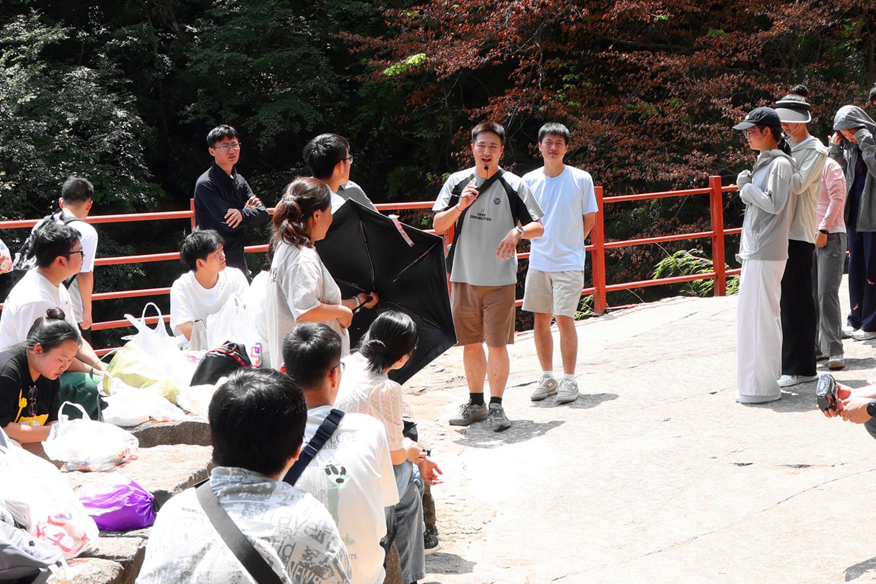 抵達(dá)目的地后,全員進(jìn)行了熱身,為登山做好充分準(zhǔn)備。隨后自由組合成4個(gè)小組,推選組長(zhǎng)并統(tǒng)籌協(xié)調(diào)。徒步途中,一幕幕暖心場(chǎng)景接連上演:體力充沛的青年主動(dòng)接過(guò)同伴的背包,陡峭路段上隊(duì)員們手手相扣形成穩(wěn)固“人鏈”,有人步伐放緩時(shí),身旁立刻響起“加油,我們一起走”的鼓勁聲,更有不少人沿途彎腰撿拾垃圾,以行動(dòng)踐行“無(wú)痕戶(hù)外”理念……這些雙向奔赴的扶持,讓攀登之路充滿(mǎn)溫度,更生動(dòng)詮釋了“共攀高峰”絕非單打獨(dú)斗,而是并肩前行的深層含義。最終,在全員互助下,所有成員成功登頂,無(wú)人掉隊(duì)。山頂?shù)膱F(tuán)建游戲?qū)夥胀葡蚋叱保骸敖叹氄f(shuō)”游戲中,大家全神貫注捕捉指令,在動(dòng)靜之間錘煉反應(yīng)與專(zhuān)注;“運(yùn)動(dòng)大腦”環(huán)節(jié)里,拋接水瓶的互動(dòng)讓團(tuán)隊(duì)配合愈發(fā)流暢,笑聲與喝彩聲在山間回蕩。